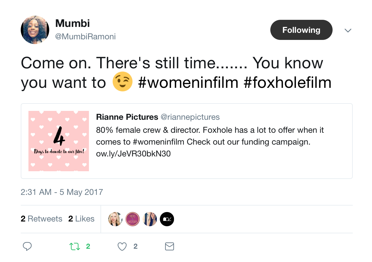 But it isn't an easy way out! It requires a lot of work and there's always the risk that you won't raise the funds that you need for your project. Over the past two years at Rianne Pictures we've successfully raised over £4,000 through crowd funding for our films Why Are You Sad, Demi and most recently Foxhole. But this wasn't simple, so we've broken down 10 tips that may help you for your crowd funding campaign.