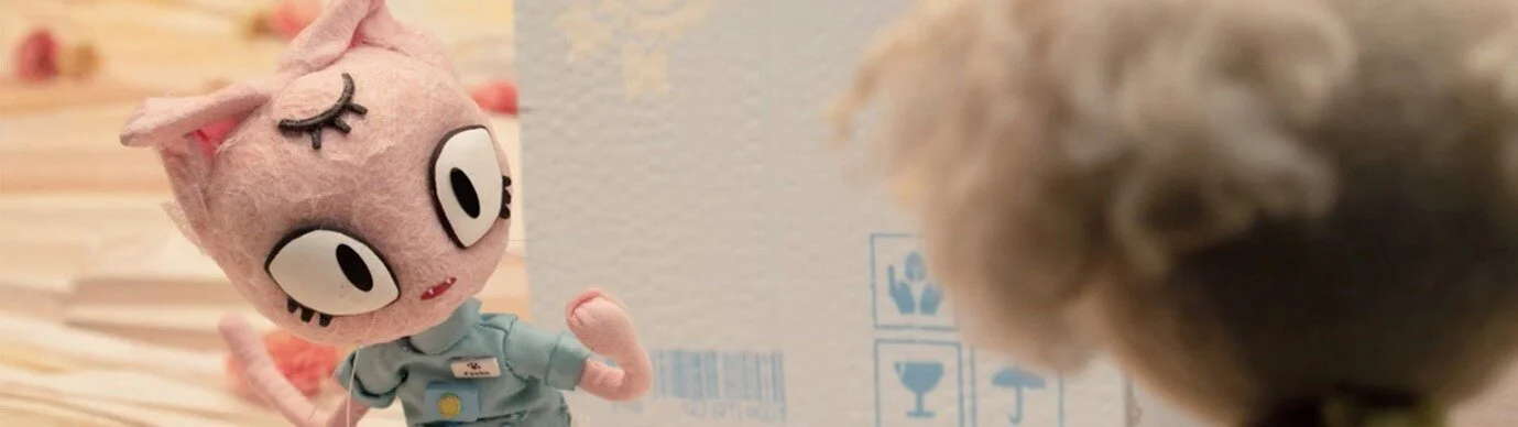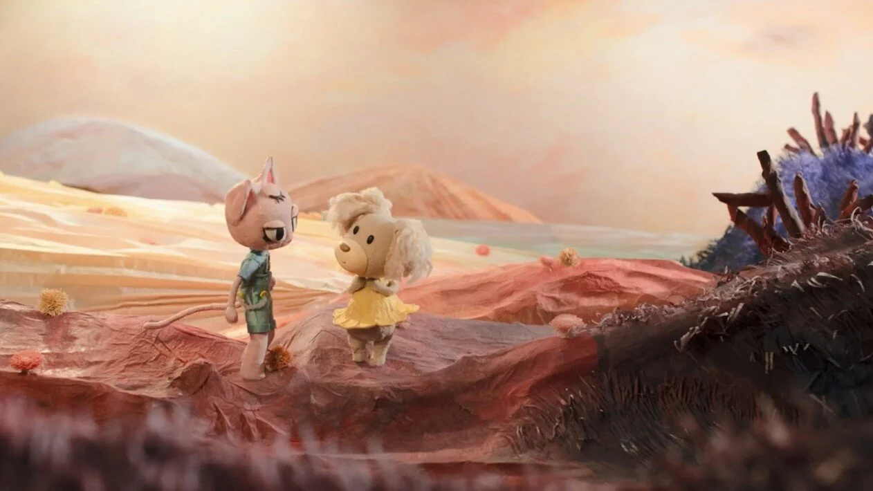 I wanted to make Meow or Never in stop-motion because there's a tactile realism to it unparalleled by any other animation medium. I liked the idea of being able to push and pull and stretch my characters in real time to have them act the way I'd like, instead of having to navigate that through a computer screen, which would have been the case had I made it in 3D. While that can be fun as well, Meow or Nevers’ strengths lie in its beautiful paper world and its handmade, tangible characters. The flaws and imperfections that come with filming in stop-motion adds to its authenticity - it adds to the palpable quality of Pucha and Blip, with how their fur and fluff glint under real light, how they bend and bounce to gravity. There's also an inherent weirdness to stop-motion which I wanted to tap into. All of this helped me decide that stop frame was the way to go for the main storyline.